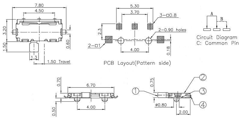 微型撥動開關技術參數: