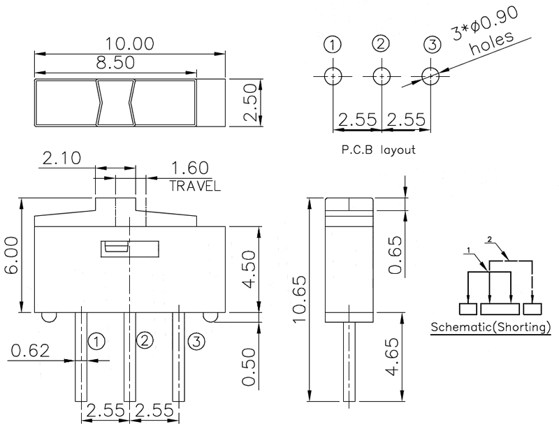 微型撥動開關技術參數: