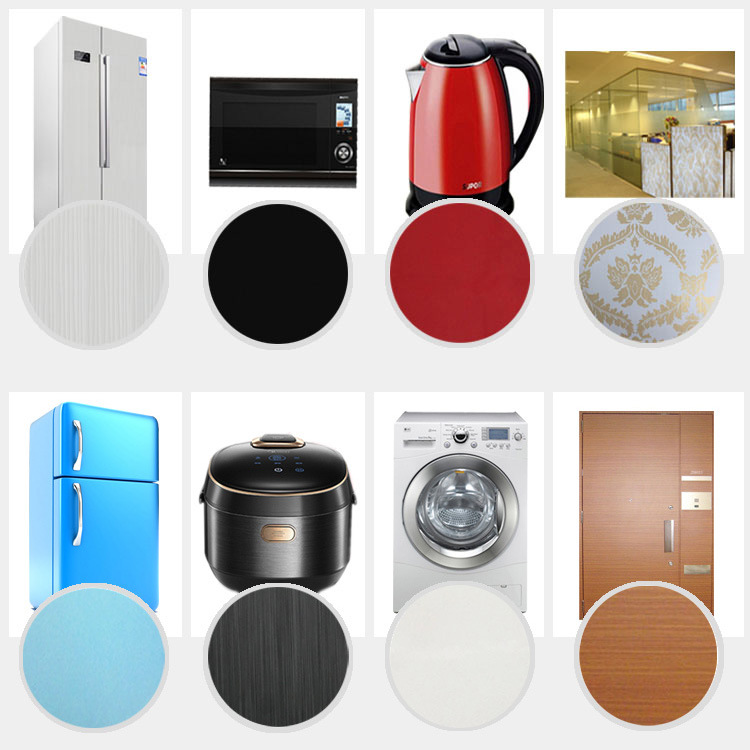 1.家電:冰箱、冷藏柜、空調、洗衣機、熱水器、消毒柜、油煙機; 計算機機殼、機頂盒、DVD 機殼、電視機后蓋板;2.家具:廚柜、衣柜、消毒鞋柜、酒柜、屏風、浴室等;3.建材:隔墻、辦公室隔板、廁所隔板、電梯內飾;4.交通:船舶內部裝飾、船舶防火門和巴士內裝等;5.門業:單面及雙面卷門、車庫門、防盜門、室內門、門框、窗框等;6.其他:浪墻板、高隔間、 SVP 彩釉鋼板、各類室內外...