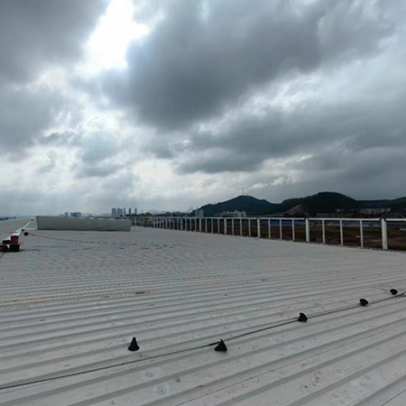 海美防水瓦以鋼板為基板,表面貼覆具有防水防腐功能的TPO/PVC卷材(熱塑性聚烯烴類防水卷材),是海美金屬推出的新一代防水防腐屋面建筑材料。海美防水瓦主要特點就是在各類環境下不易生銹不易漏水,使用熱風焊接進行相連,覆蓋全部裸露的縫隙,在使用過程中可以達到蓄水不滲透的效果,防水效果好,同時還有較好的抗風揭性能和耐老化性能,為鋼結構建筑屋面提供了長久的防護。